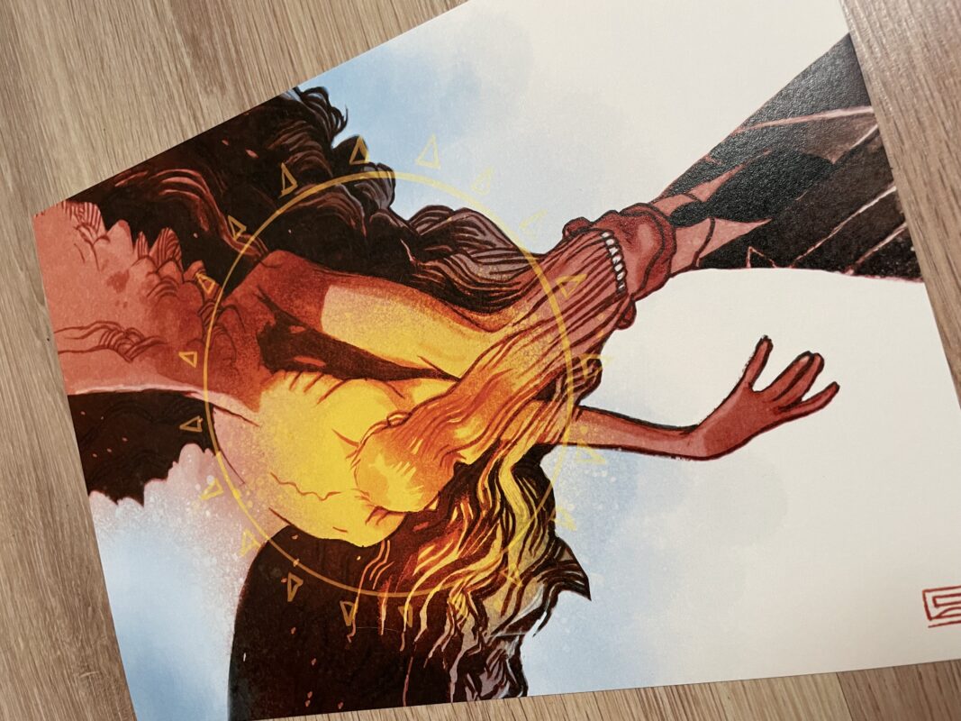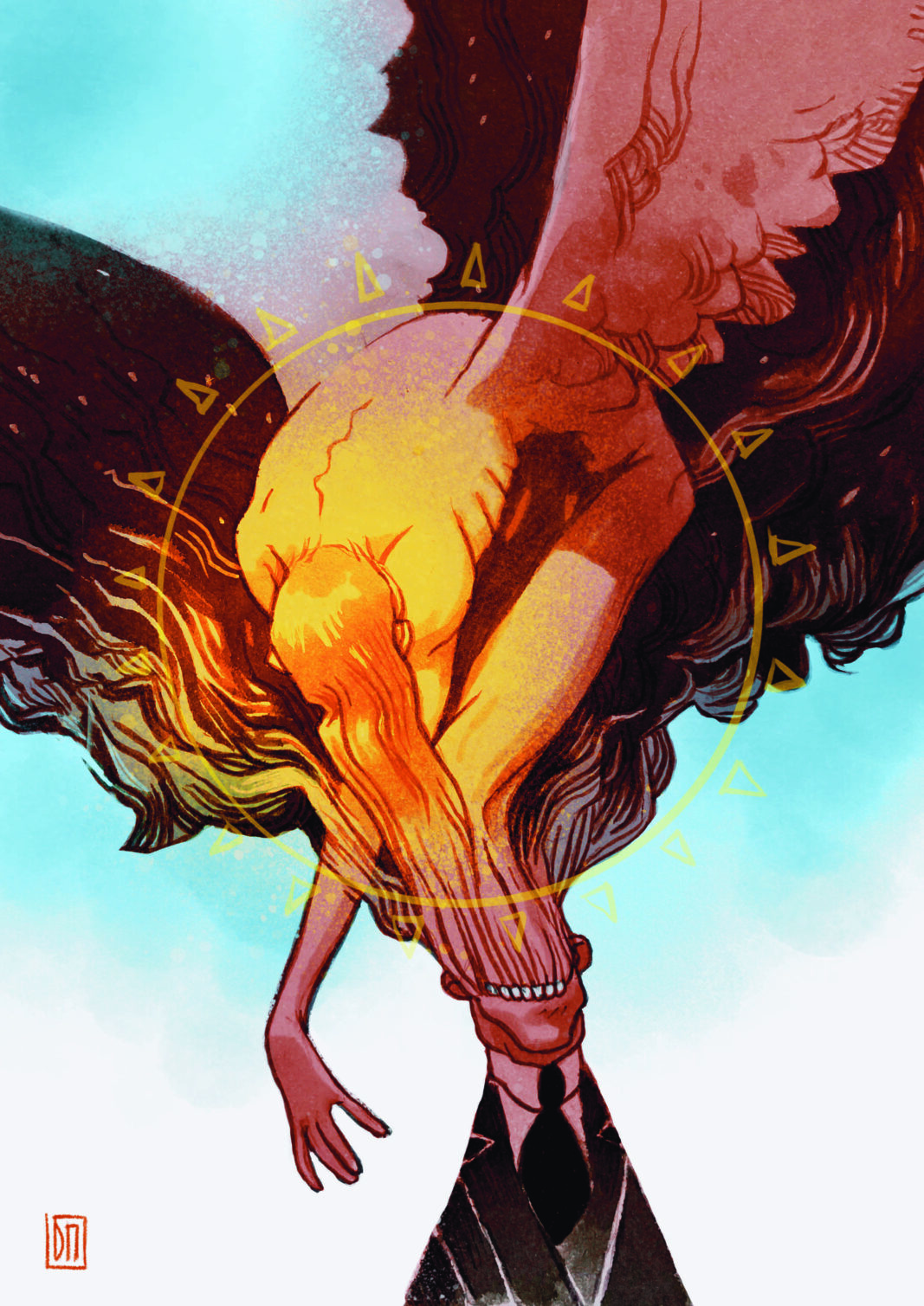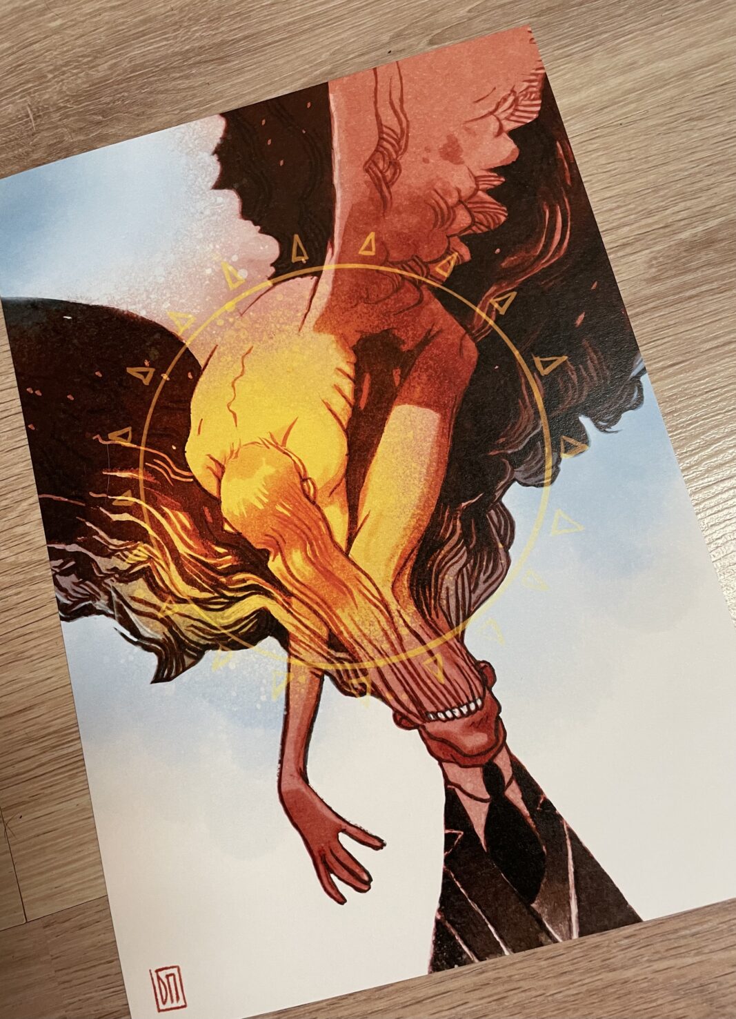 Ghost in the machine illustration is inspired bya term originally used to describe and critique the concept of the mind existing alongside and separate from the body. Traditionally ink drawing, coloured and reproduced digitally. 8-1/4 x 11-3/4 in (210 x 297 mm). Numbered and signed art print on 300gr paper.